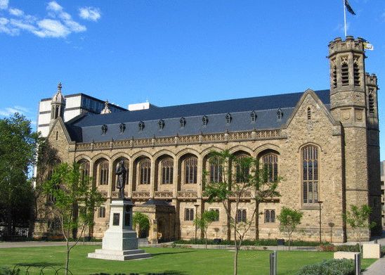阿德莱德大学,位于阿德莱德市,1874年创校。优势专业包括:酿酒与食品,生物科技,物理科学,工程,信息技术,无线电通讯,环境科学,会计与金融,社会科学专业。