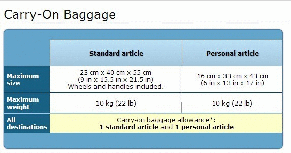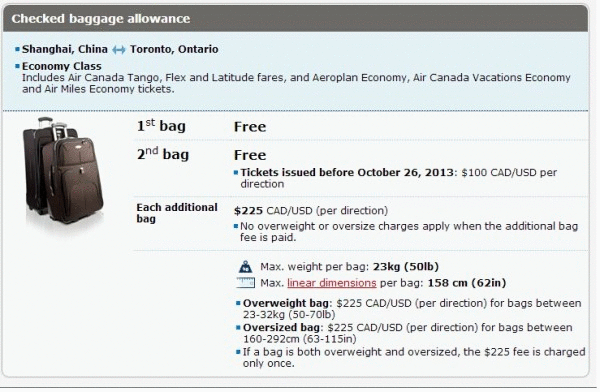 因为大部分学生都选择坐加航(Air Canada),所以在此简要罗列下加航的经济舱行李要求: