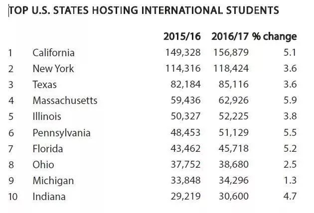 另外,根据美国国际教育部发布的《国际教育交流开放门户报告》,在2016-2017学年,美国最最热门的留学地区是加州和纽约,德州的留学生人数也在增长。