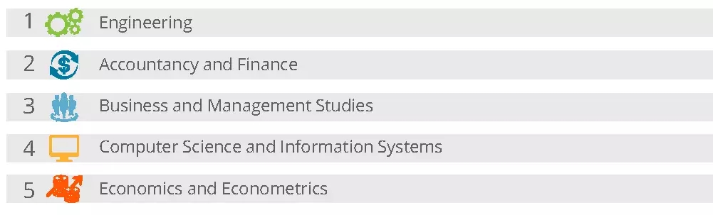 QS调查全球各个国家的大学后发现。最热门的5大专业是工程学、会计金融、商科管理、计算机科学信息系统、经济学。它们也是就业比较好的,雇主招聘多的专业。