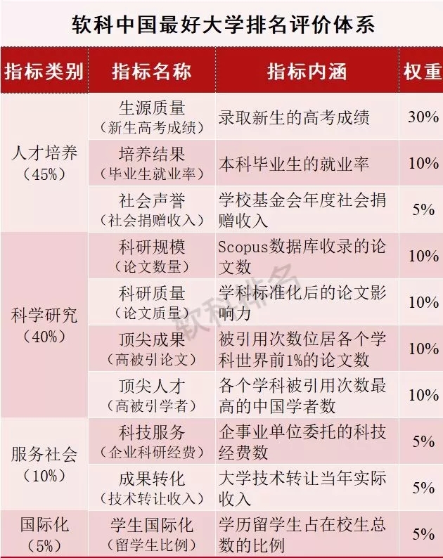 中国最好大学排名的评价体系涵盖人才培养、科学研究、服务社会和国际化四个维度,使用的都是最能体现大学办学水平的关键指标,例如新生高考成绩、毕业生就业率、论文数量与质量、成果转化收入等,因此排名结果能够客观地反映大学的竞争性地位。