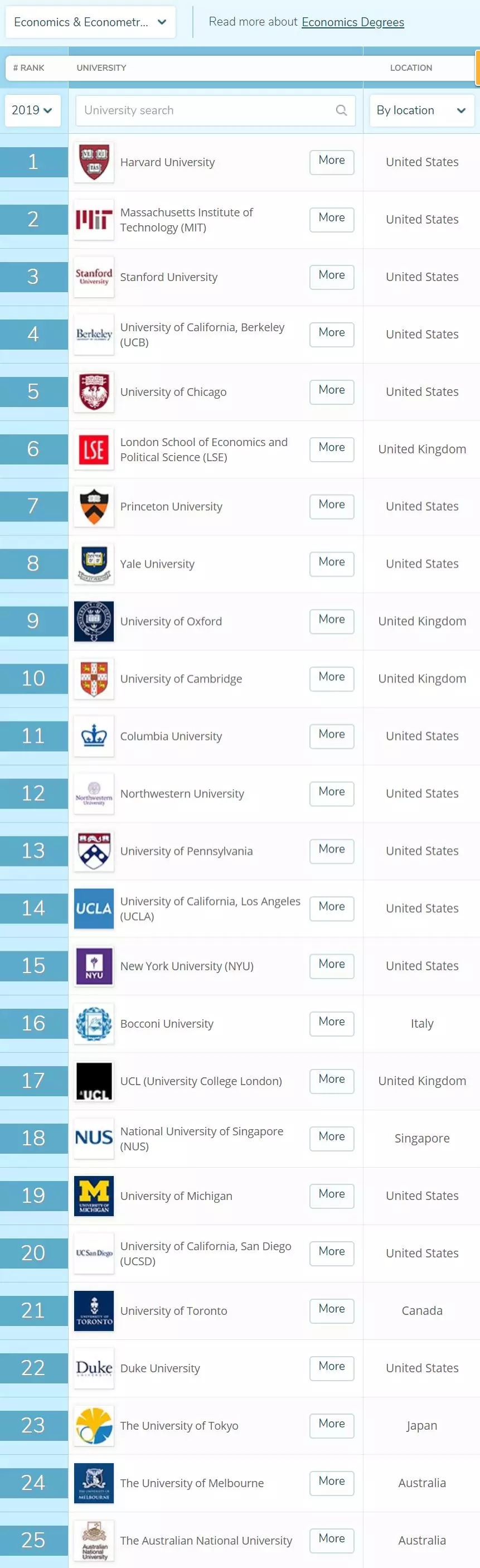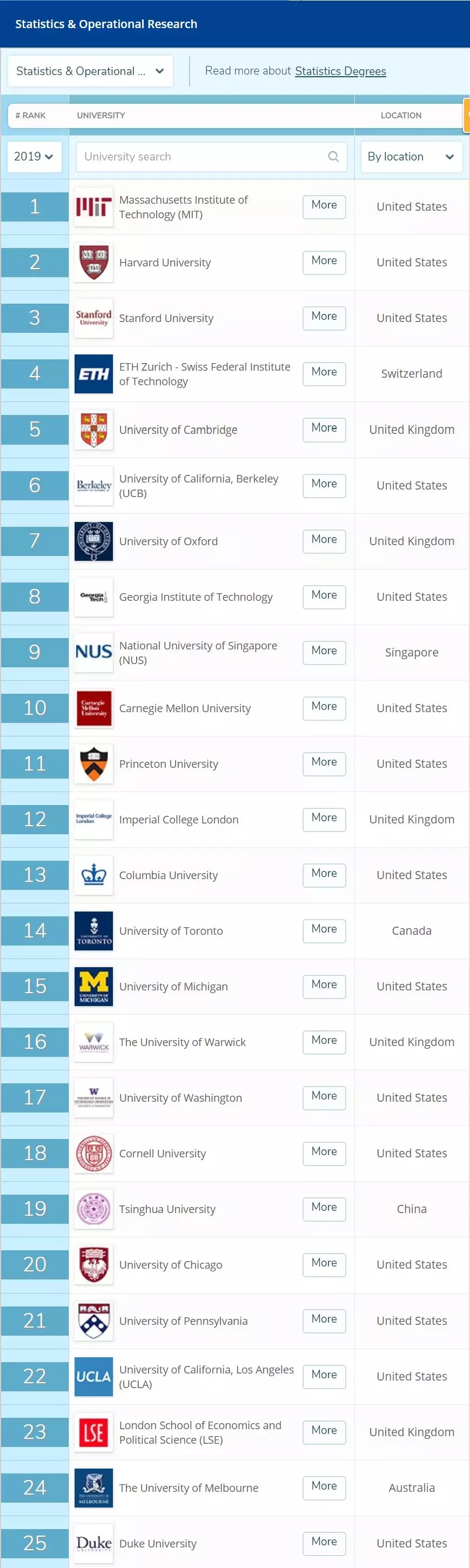 完整榜单:https://www.topuniversities.com/subject-rankings/2019