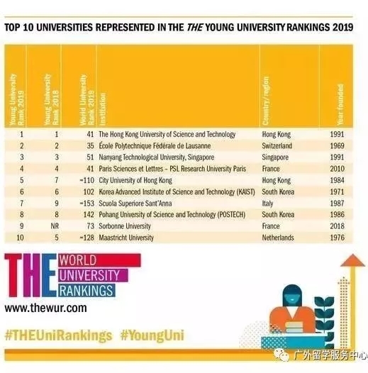 香港科技大学(HKUST)排名第一,连续第二年被评为全球最佳年轻大学,位于第二名的是瑞士洛桑联邦理工学院,而新加坡的南洋理工大学排在第三位。