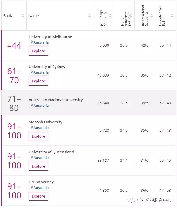 澳洲学校本次表现不俗,从去年的3所上榜,到今年的5所上榜,实力也不容小觑,悉尼大学也往前跃升了一个台阶。