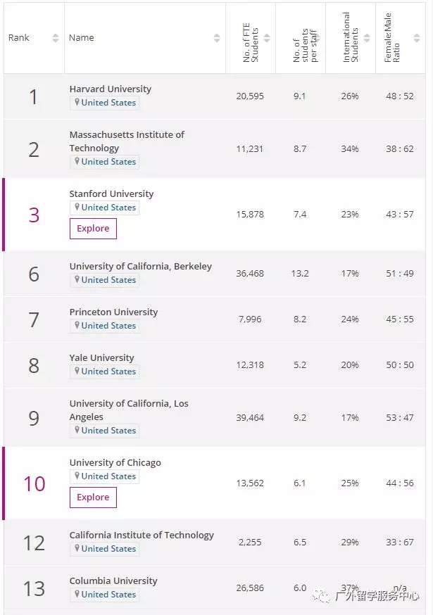 美国上榜42所学校中的前10所依然不变,哈耶普斯麻自不必再说,加州大学伯克利分校和加州大学洛杉矶分校表现一如既往地优秀,哥伦比亚大学和加州理工学院都只能望其项背。