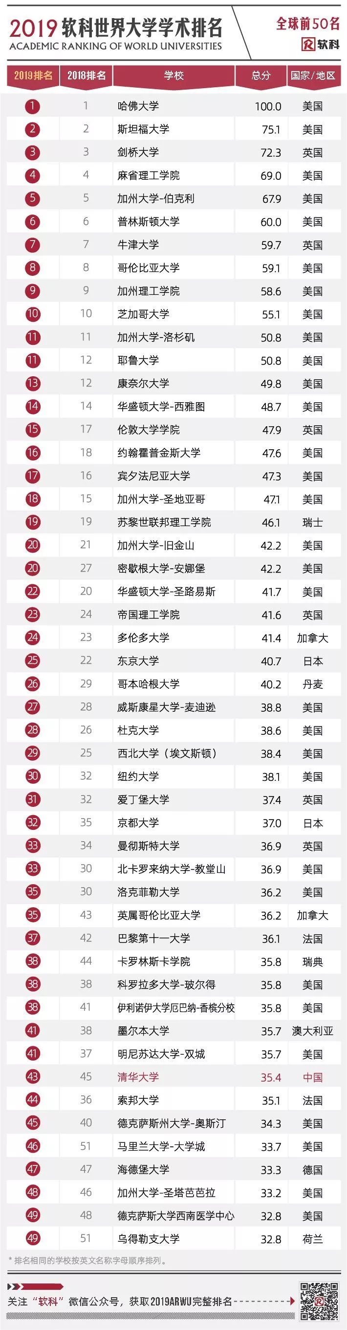 8月15日,2019 ARWU软科世界大学学术排名正式发布。猛的一看标题,好熟悉哦,不是之前已经发过么,大家可能跟我有同样的疑惑,事实呢,之前发布的是2019软科世界一流学科排名,是学科排名哦,大家可别记混了哦!