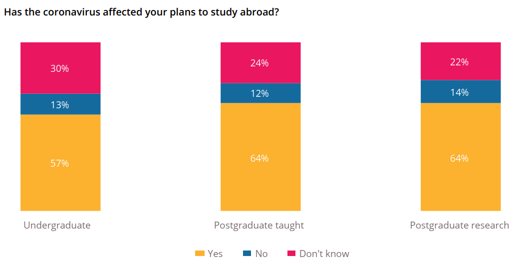相对而言,研究生课程较短,在线课程也可作为弥补措施。此外,本科生或准本科生的选择余地很少,再加上全球流动限制和就业市场紧缩等因素,本科生变更留学计划的意愿相对较低。