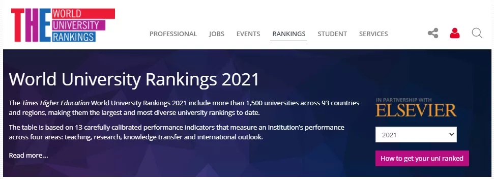 泰晤士高等教育世界大学排名是最均衡且综合的全球大学排名,以13项单独的绩效指标涵盖了研究型大学的全部核心活动:教学、研究、知识转移和国际视野。