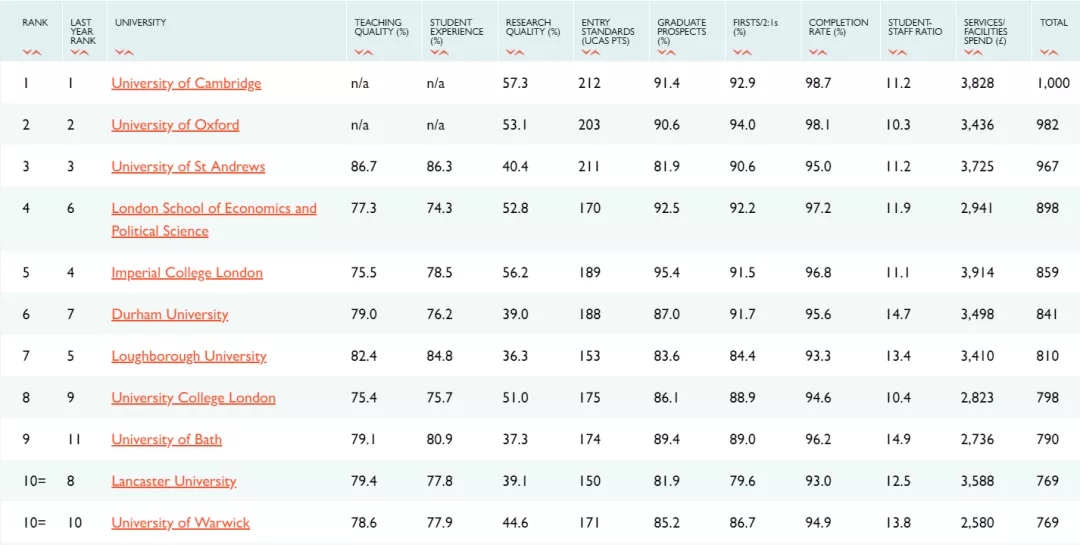 1、剑桥、牛津、圣安德鲁斯再次蝉联前3名;