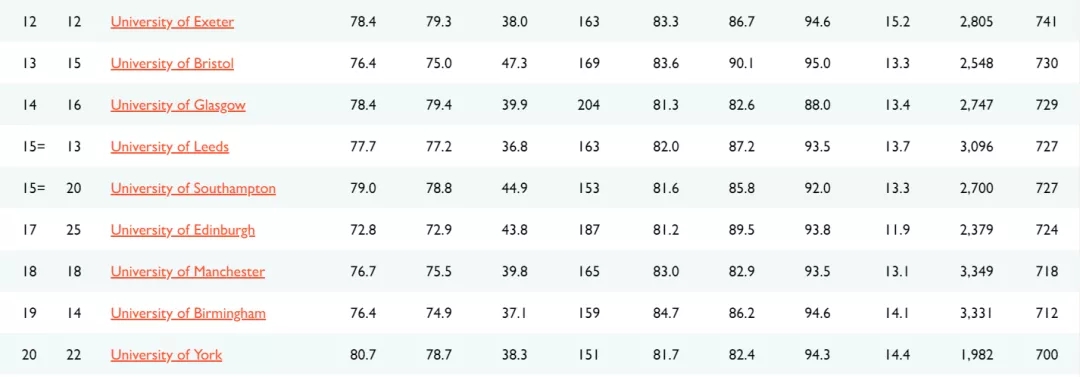 5、有升自然也有跌!那些较为出名的跌幅较明显的大学有:伯明翰大学(14→19)、诺丁汉大学(21→26),拉夫堡大学、兰卡斯特大学、利兹大学也各下降2位;