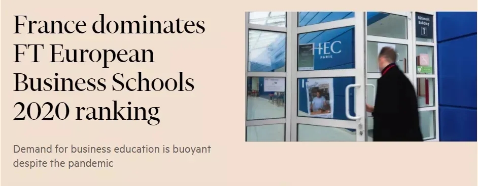最近,被誉为"欧洲商科最重磅排名"、“欧洲商学院竞争力风向标”的年度榜单《金融时报》2020年欧洲商学院综合排行榜(《Financial Times》: European Business School Rankings 2020)正式出炉。