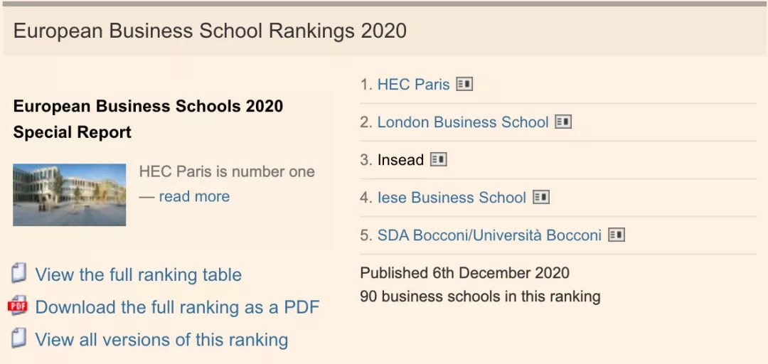《金融时报》每年都会发布一次欧洲商学院排名,今年是其连续第17年发布这一榜单,绝对是众多学生选择商学院的重要参考指标,也是业界大佬们最爱参考的排名之一。