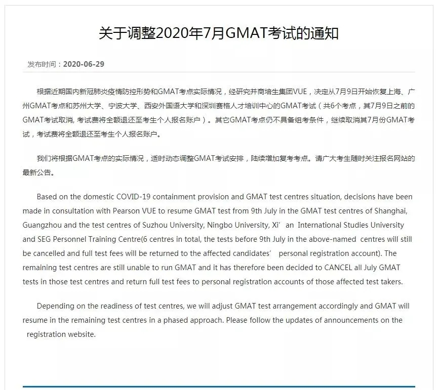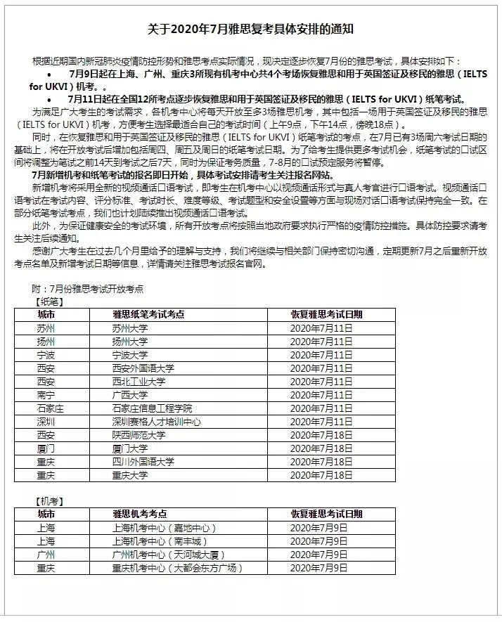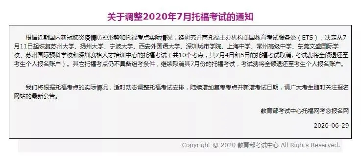 6月29日下午,教育部考试中心、雅思托福等官方网站正式发布通知:全国范围内逐步恢复7月线下雅思、托福、GRE、GMAT考试!