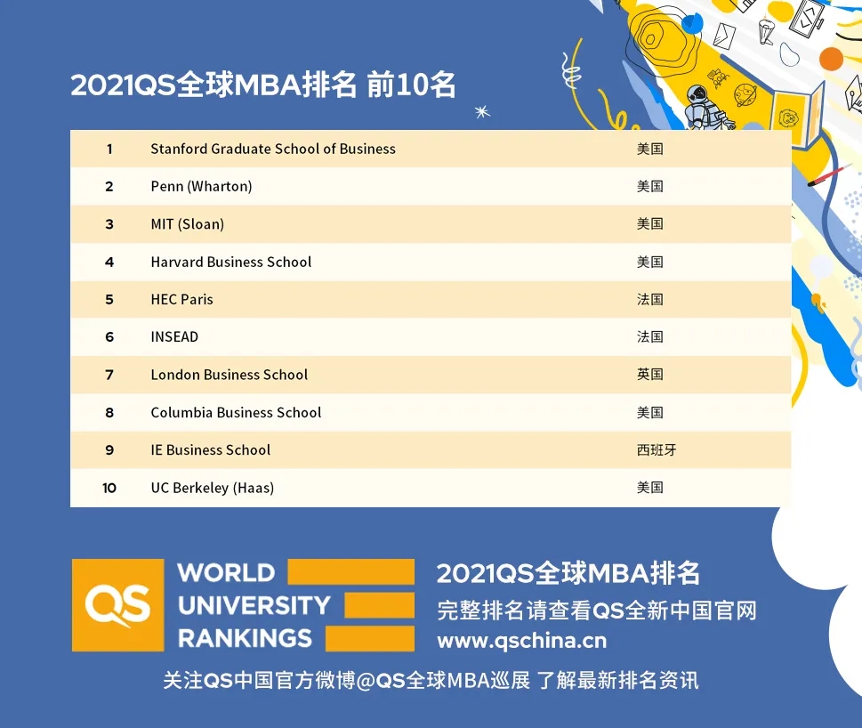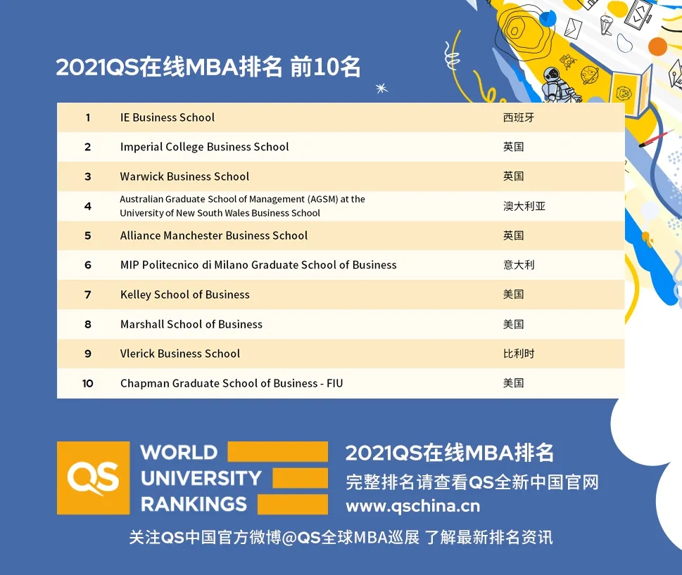 近日,QS世界大学排名发行方,全球高等教育研究机构QS Quacquarelli Symonds发布了最新QS全球EMBA(高级管理人员工商管理硕士)排名。