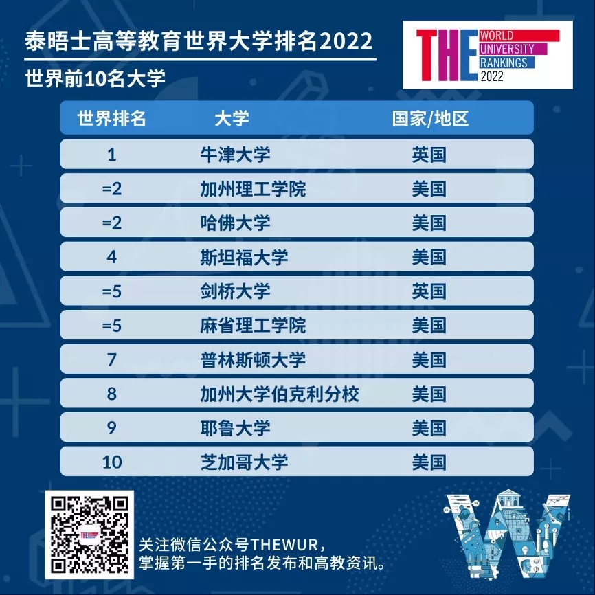 9月2日,北京时间早上7时,泰晤士高等教育正式发布2022年THE世界大学排名。